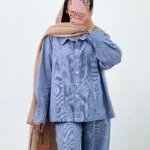 - مدل مانتو راسته و آزاد، دکمه ها و جیب کاربردی هستن. شلوار کمرکشی و جیب دارد.